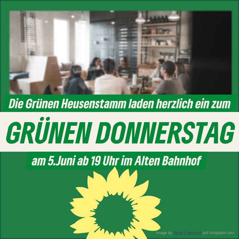 wir laden euch herzlich ein, an unserem nächsten politischen Stammtisch, den "grünen Donnerstag" teilzunehmen! Dies ist eine wunderbare Gelegenheit, um über aktuelle Themen, Herausforderungen und Chancen in unserer Gesellschaft zu sprechen, Meinungen auszutauschen und gemeinsam Lösungen zu entwickeln.
