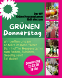 Liebe Freundinnen und Freunde der politischen Diskussion, wir laden euch herzlich ein, an unserem nächsten politischen Stammtisch, den "grünen Donnerstag" teilzunehmen! [...]